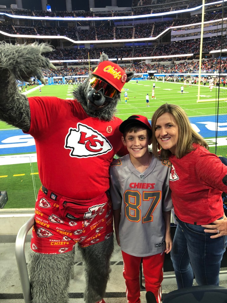 We surprised our son two years ago with a trip to SoFi Stadium for the Chiefs vs. Chargers game. The stadium was amazing, and the game ended up being a nailbiter. The Chiefs pulled off a win in magical Mahomes’ fashion by coming from behind 23 – 27 and scoring with only 31 seconds remaining to win 30 – 27.
